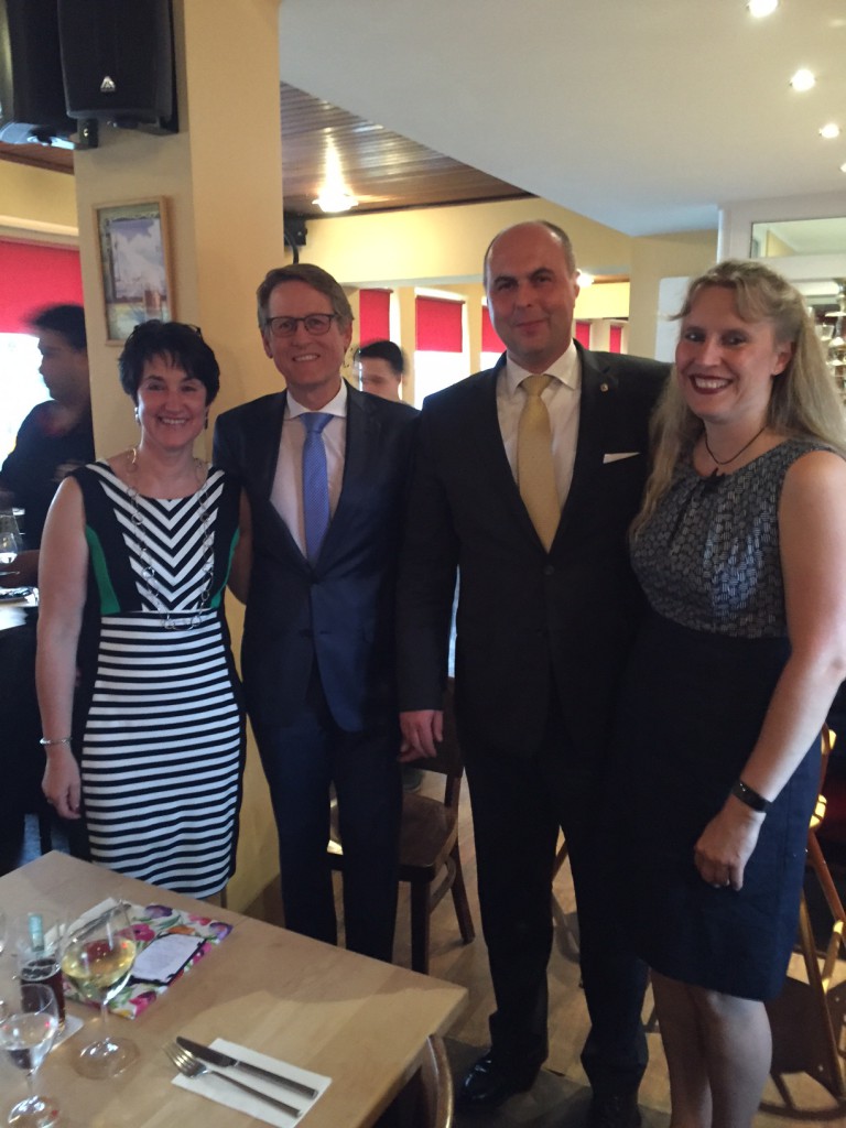 Der neue Präsident Carsten Kollath zusammen mit Past-Präsident Thomas Dopheide und ihren Gattinnen.